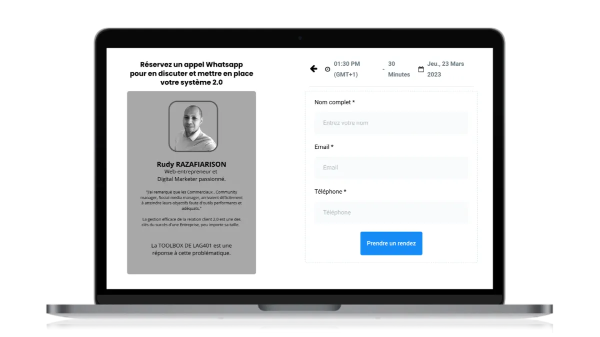 👉 Vos commerciaux seront servis : mise à disposition d'un calendrier cliquable pour une prise de rendez-vous. Notification automatique à chaque demande.d'un prospect.